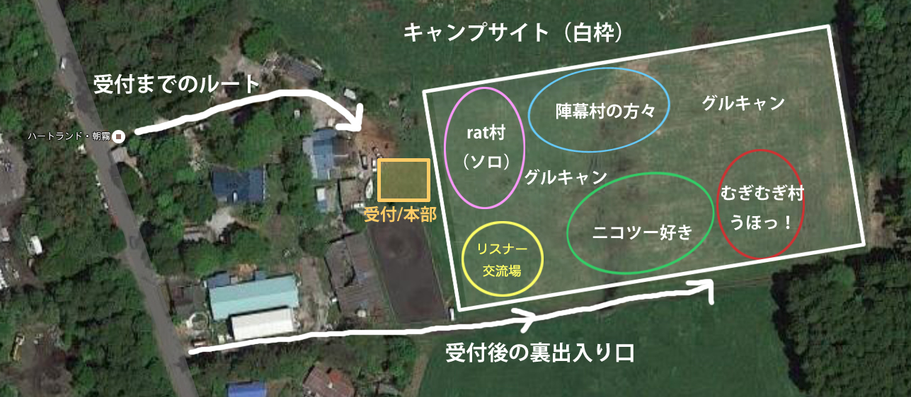 キャンプサイトは予約等不要です(主催者一括予約済み)